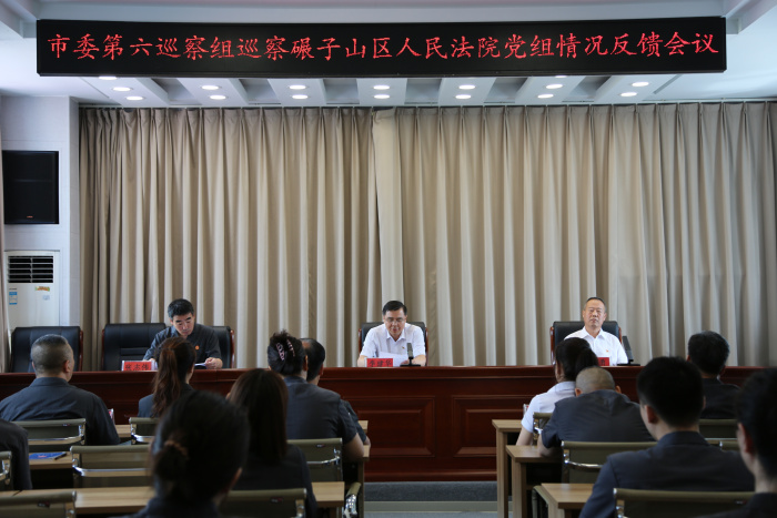 市委第六巡察组相关同志,区纪委监委派驻法院纪检组负责同志,碾区法院党组领导班子成员、中层正副职及全体干警出席会议。