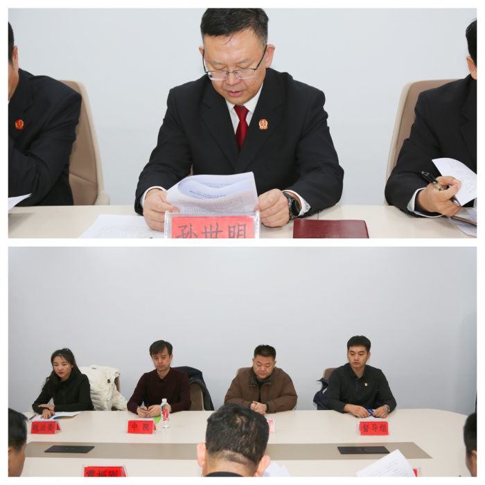 市法院技术室副主任张晓军、区督导组成员区纪委监委周琦、区委组织部胡家鹏及区委政法委李航到会指导,党组书记、院长孙世明主持会议,全体党组成员参加。